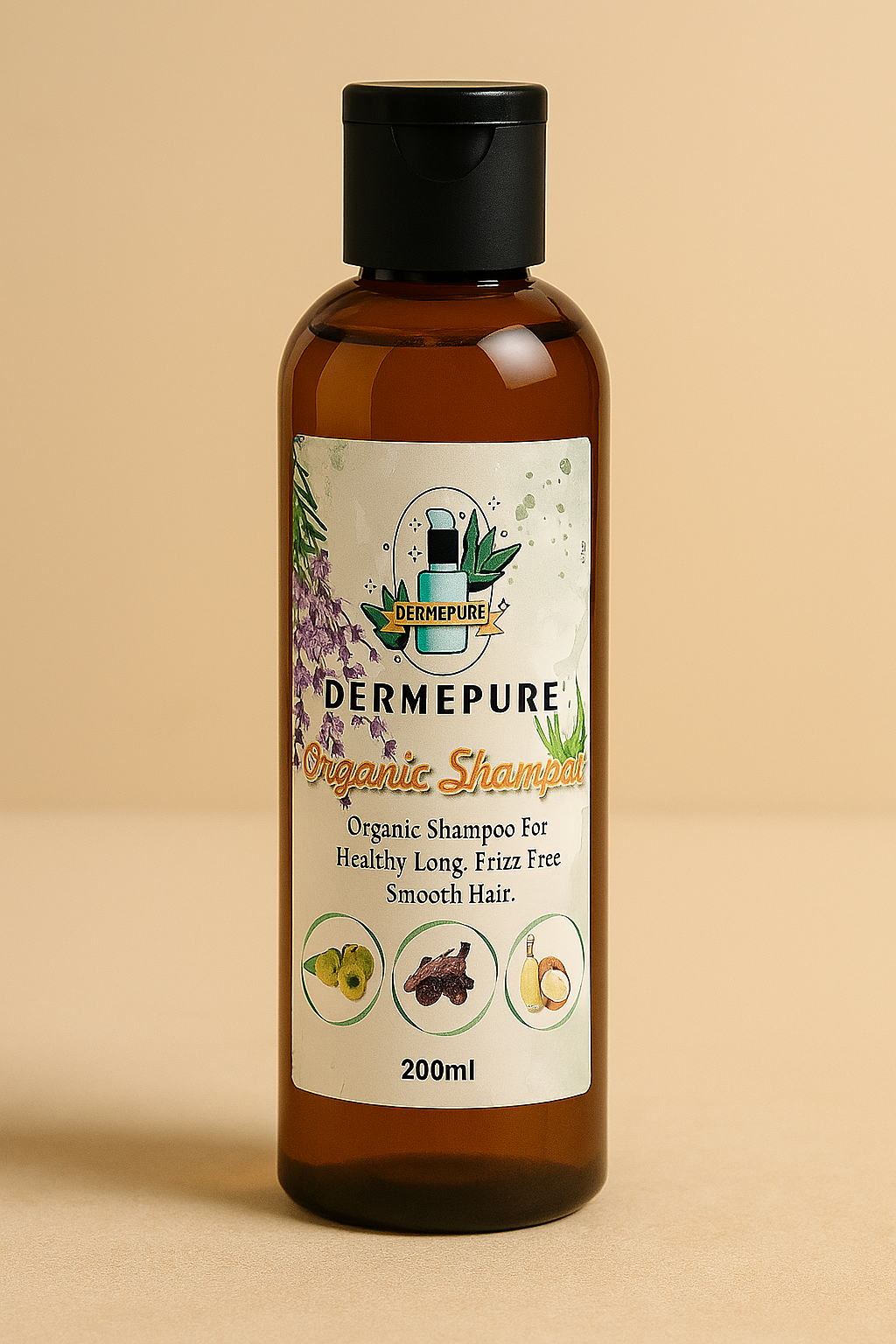 DermePure Organic Shampoo (200ml) – Gentle cleansing with herbal extracts to reduce hair fall, strengthen roots, and add natural shine.